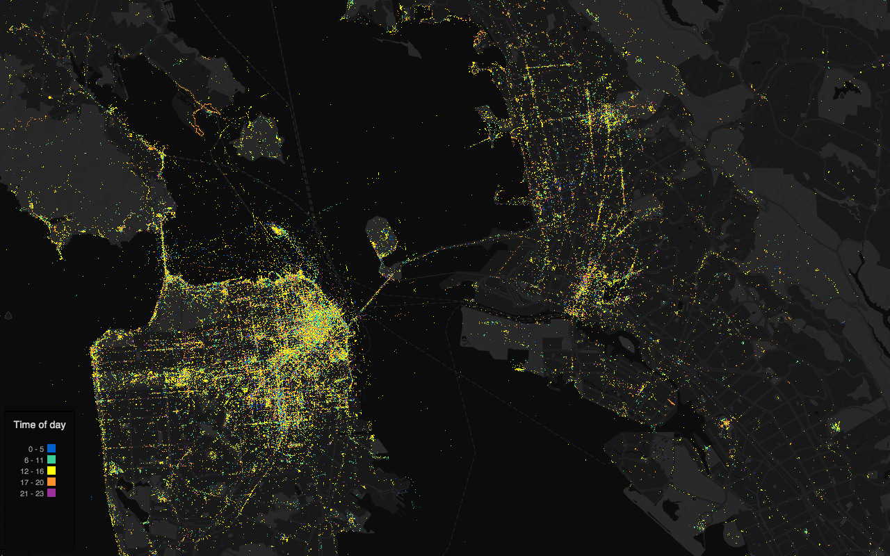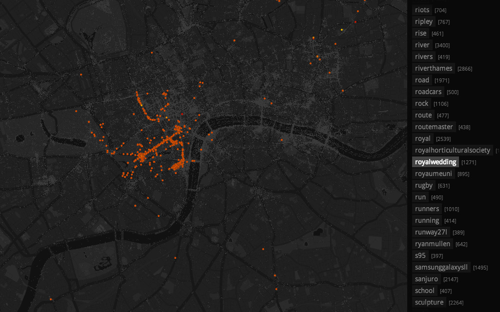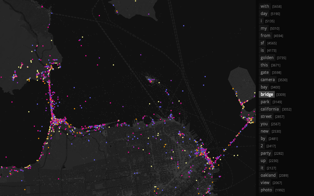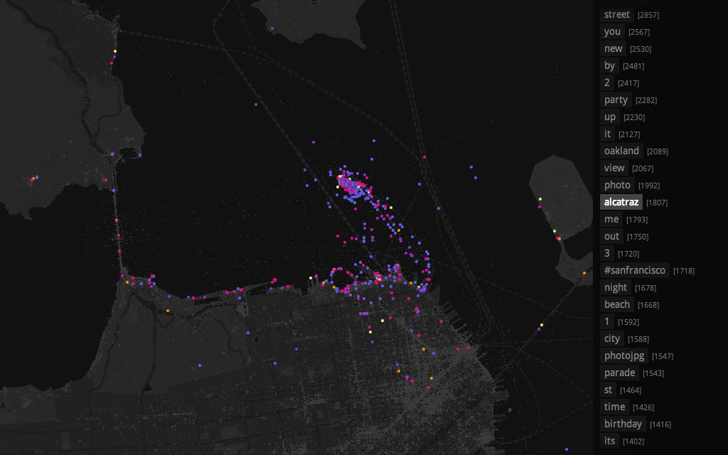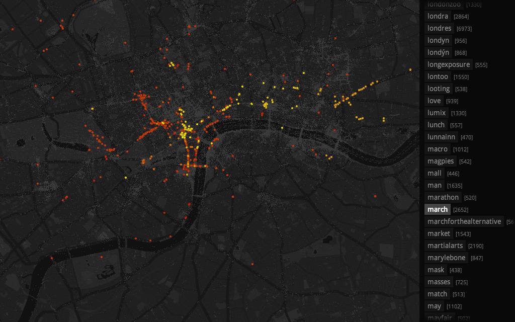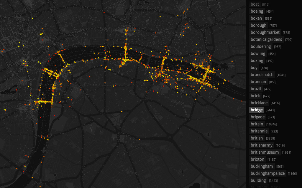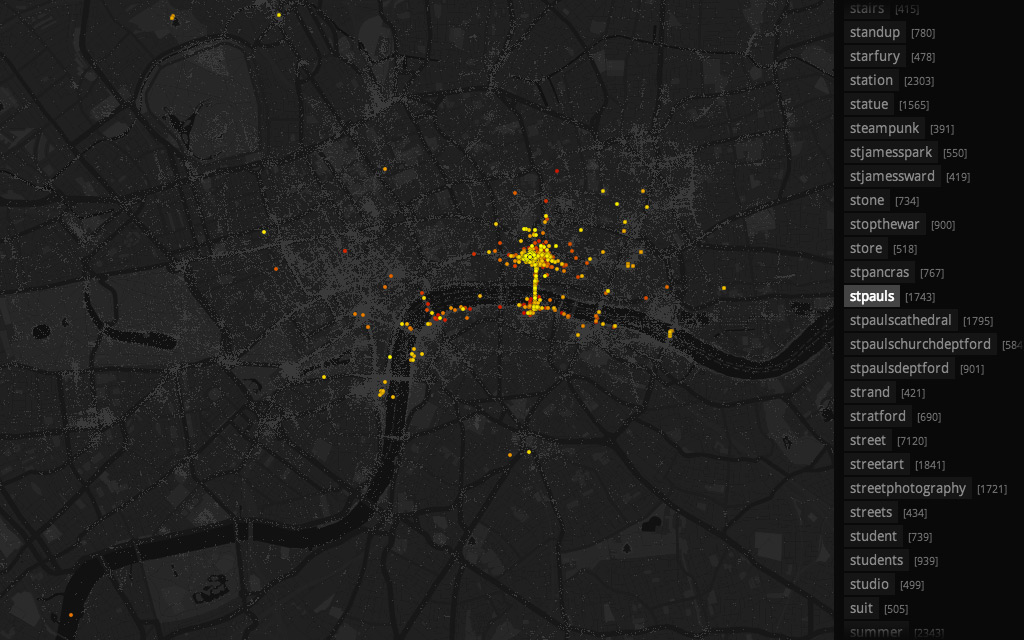 The Flickr API has been used to generate temporal city level maps. Like the archaeological record, these traces and mappings are never complete and always highly contingent:
