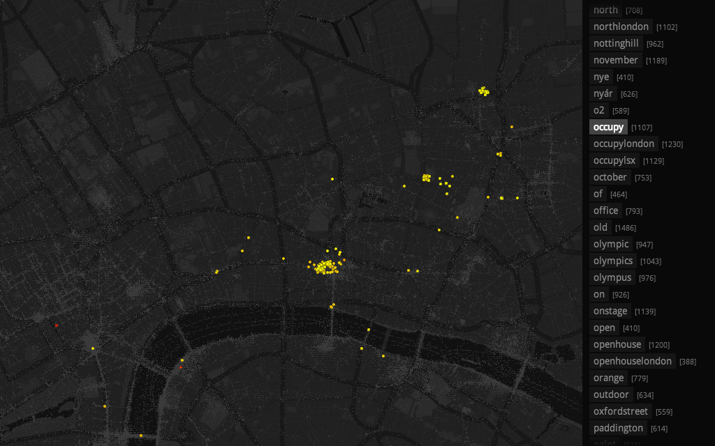 Luminous Cities explores how urban environments are described by the vast archives of image sharing networks. The project employs the last decade of Flickr's geo-coded photos to depict how the myriad of individual contributors form contrasting pictures of the city, and how contemporary events have been documented.